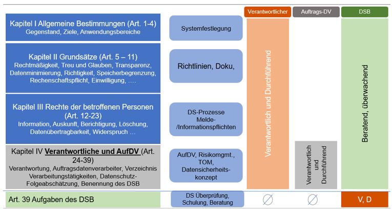 Für jede Rolle hat die DSGVO die Aufgaben festgelegt. Die Aufgabenverteilung ist aus der nachfolgenden Abbildung ersichtlich: